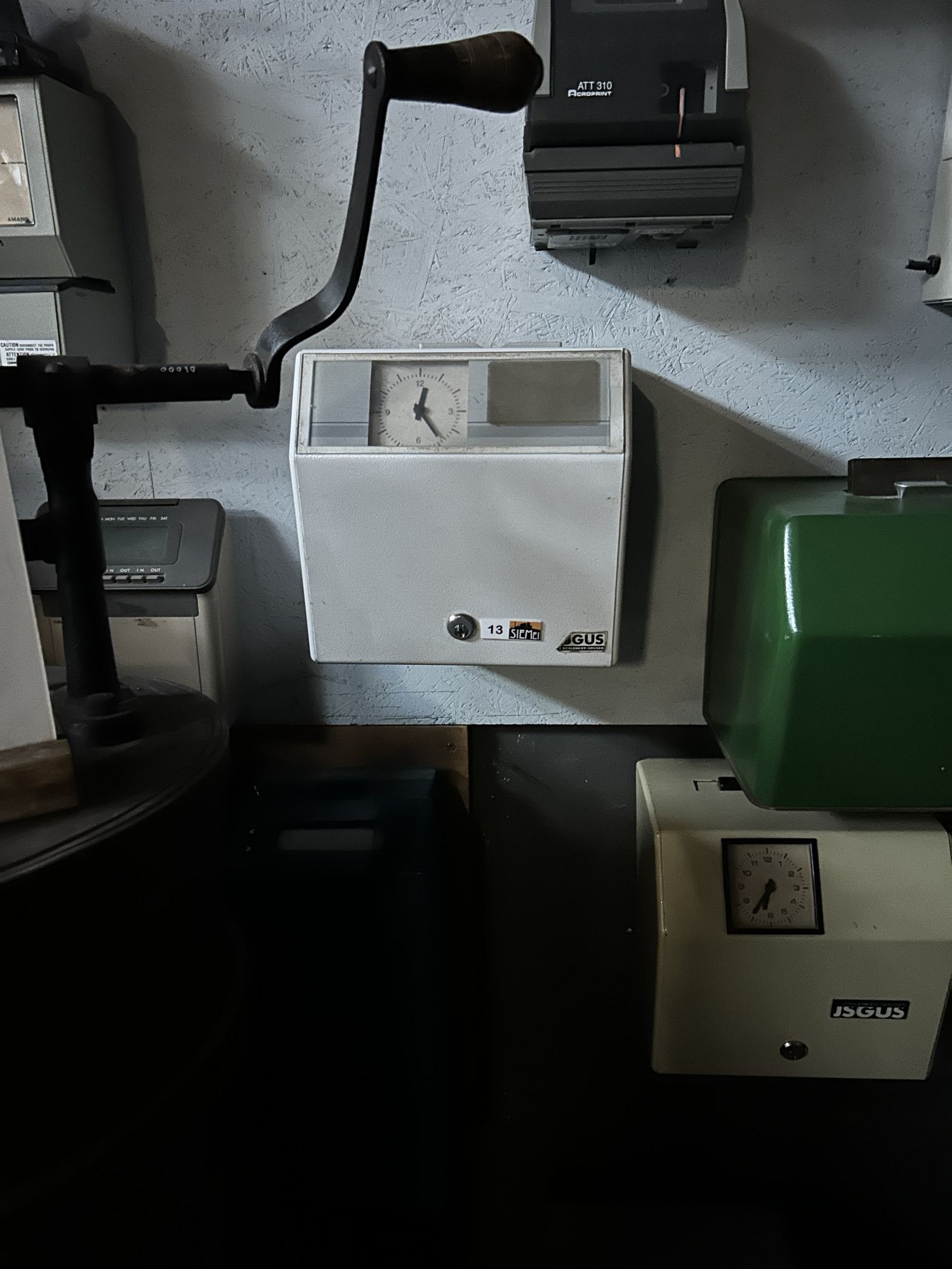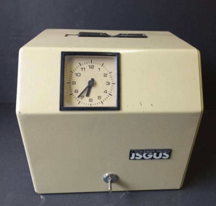 Producent: J. Schlenker-Grusen (opgericht in 1888) was een bekende Duitse fabrikant van diverse "tijd"producten, waaronder prikklokken en duivenklokken. De firma Schlenker-Grusen is later verdergegaan onder de naam Isgus, die nog steeds bestaat en gespecialiseerd is in tijdsregistratiesystemen.